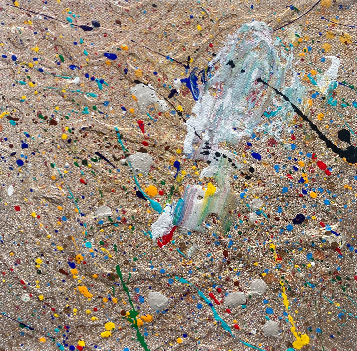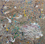 acrylic, spray paint, lava rock, and nature on canvas